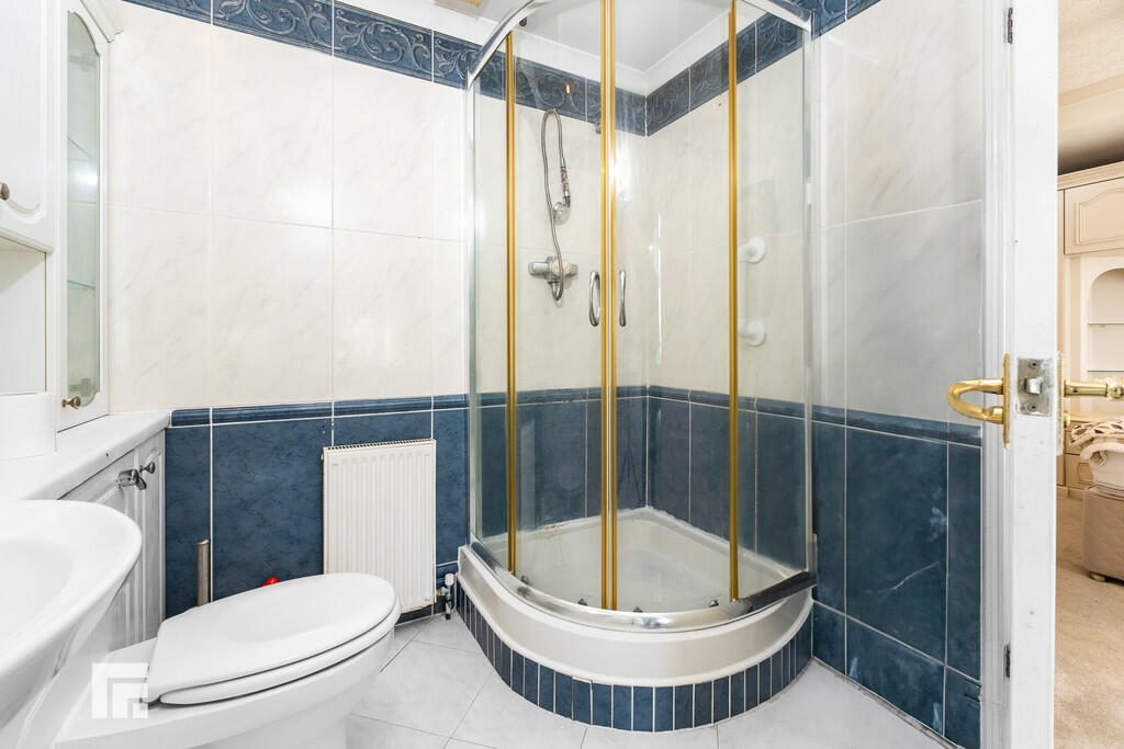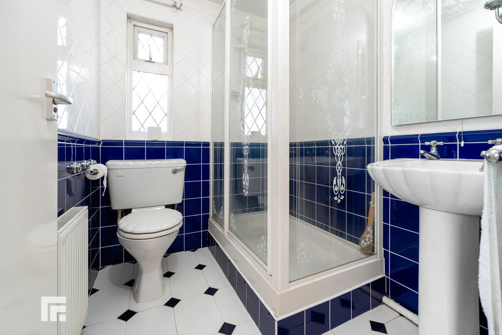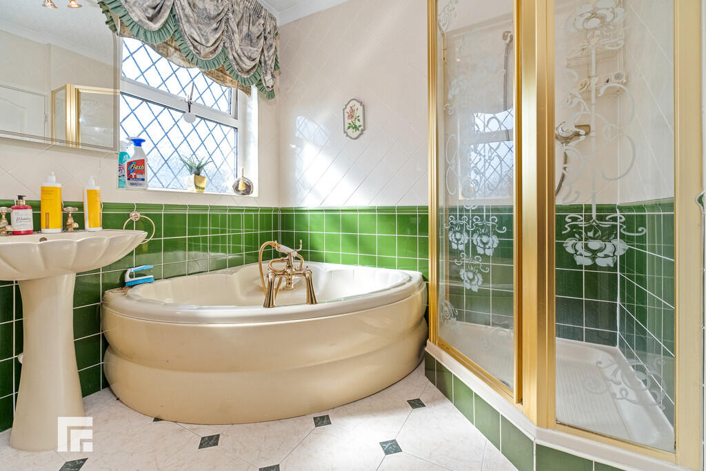 BATHROOM8' 0" x 6' 11" (2.46m x 2.11m) Double glazed window to side aspect. Fully tiled walls and flooring. Panelled corner bath with hot and cold tap over, with handheld attachment above. Pedestal wash hand basin with mixer tap over. Corner shower cubicle with mains shower. Wall mounted mirror over. WC. Pendant lighting. Coving. Radiator.