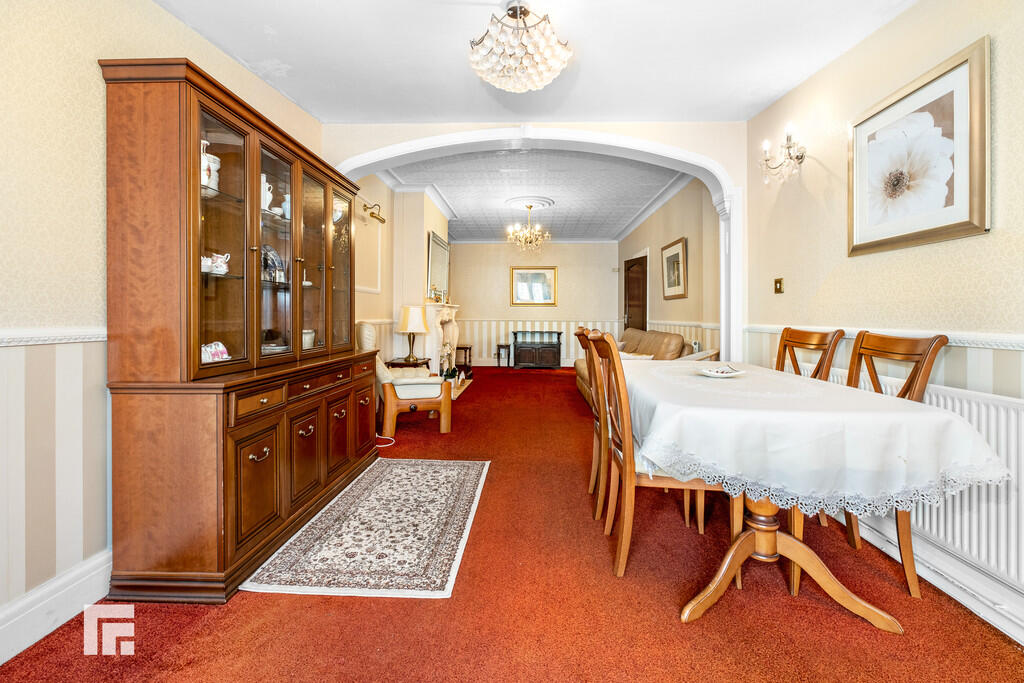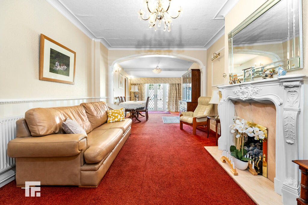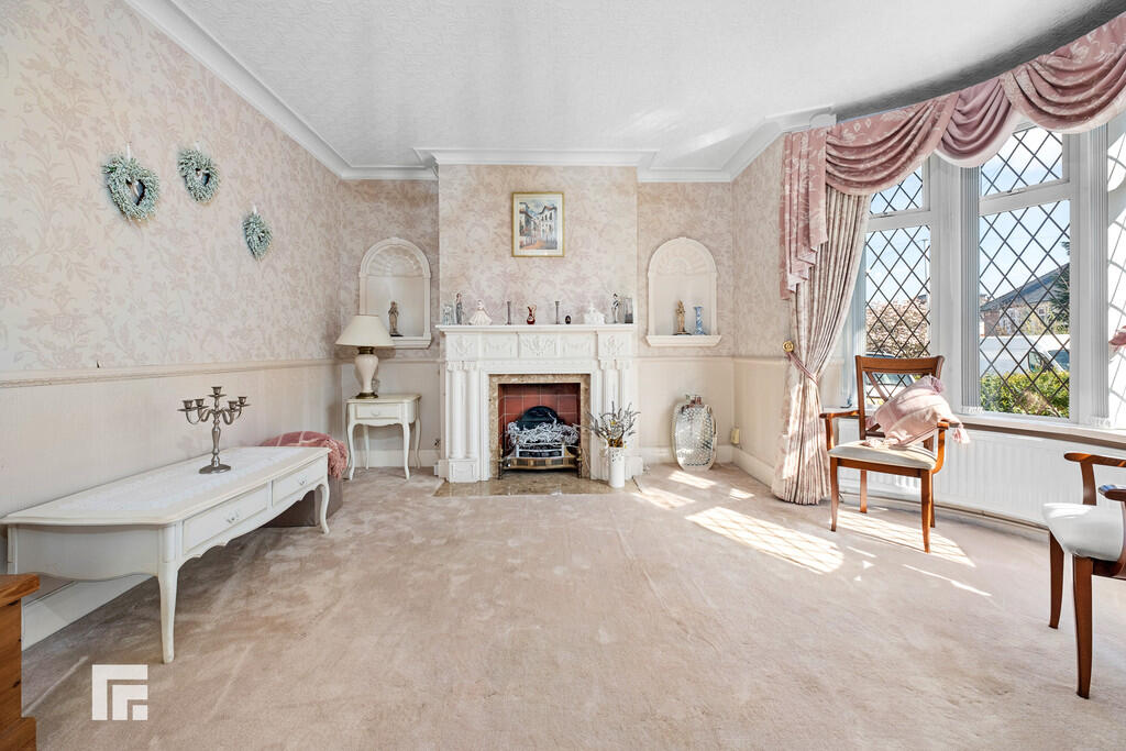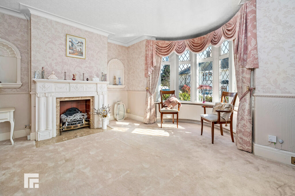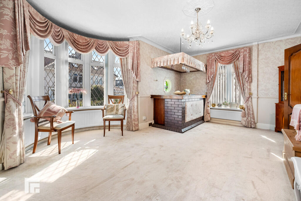 SITTING/DININGROOM30' 9" x 21' 9" (9.39m x 6.64m) Excellent sized room, with space for lounge and dining. Carpeted flooring. Pendant light fitting. Dado rail and coving to ceiling. Alcoves with gas fire and mantle surround. Radiator. Double glazed patio doors leading to rear garden.