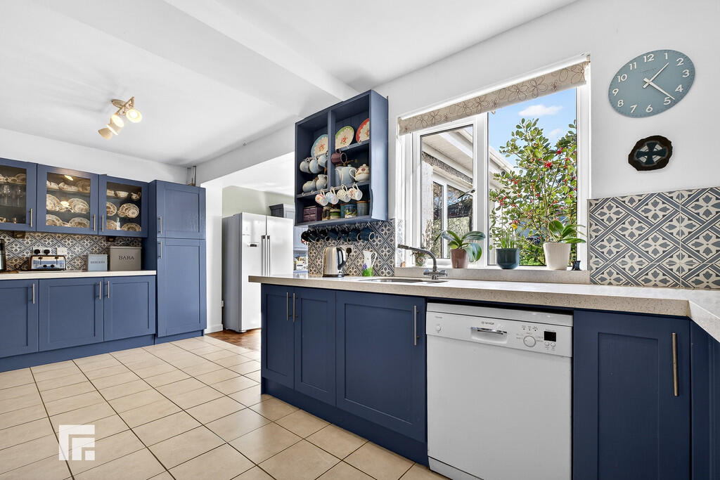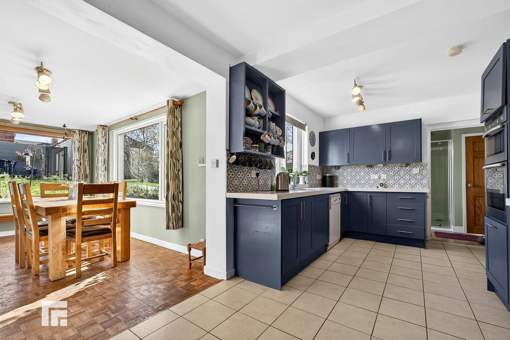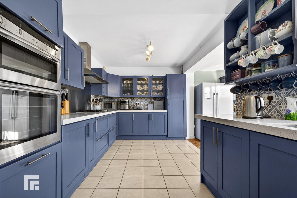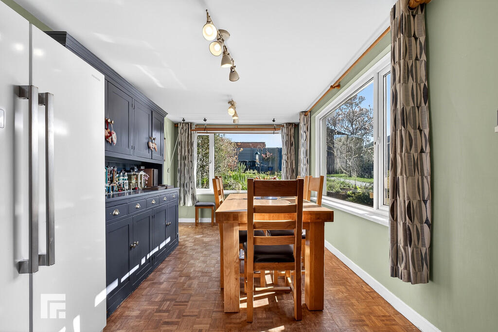 KITCHEN/DININGROOM7' 72" x 5.74' 0" (3.96m x 1.52m) A well presented L- shaped kitchen fitted with a range of base and eye level units incorporating one and a half bowl stainless steel inset sink with complimentary Quartz work surfaces. Five burner Neff gas hob with extractor hood over. Double electric oven, space for fridge/freezer and dishwasher. Tiled splash backs. Part tiled floor and part parquet wood flooring. UPVC Double glazed window to the rear. Radiator. The dining area has two large double glazed windows to the side and rear. Electric radiator.