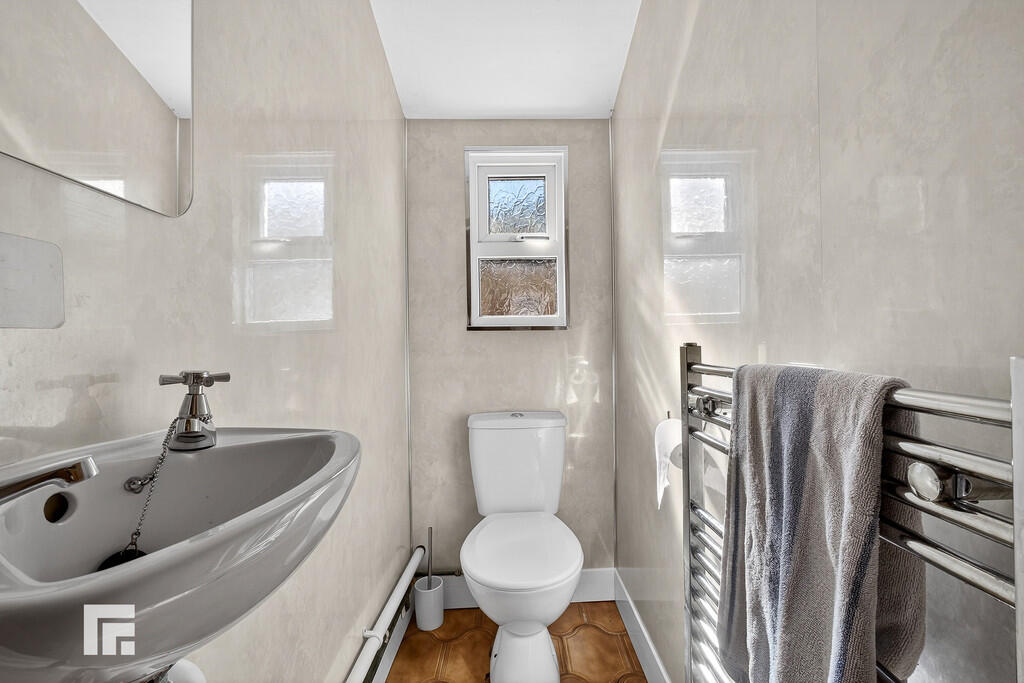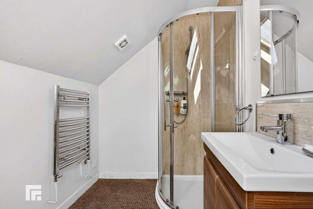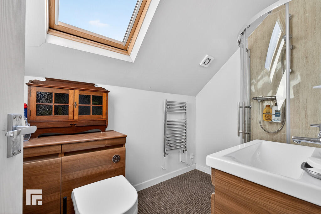 ENSUITE Velux window to the rear. Closed cistern w.c, sink with vanity and shower. Heated towel rail.