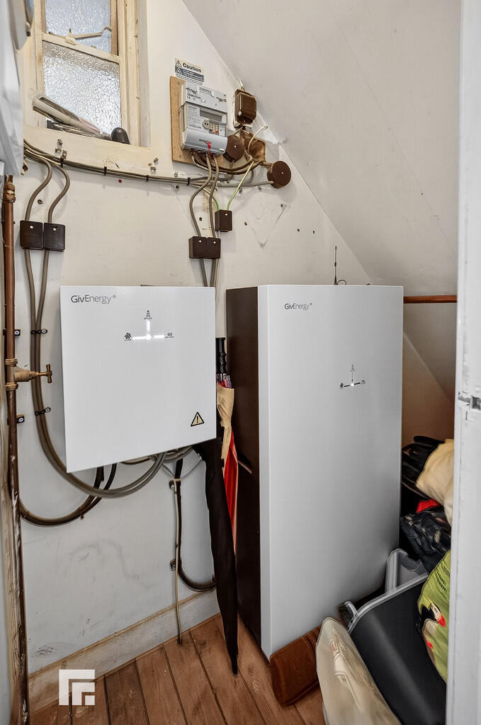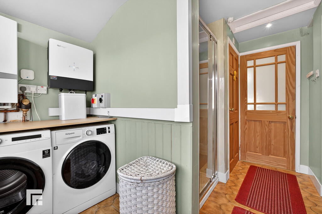 GROUNDFLOORSHOWERROOM/UTILITY Open plan glazed shower enclosure with shower in situ. Door to separate w.c. Utility area with recess and plumbing for appliances. Access to well insulated small attic. Wall mounted gas combination central heating boiler.