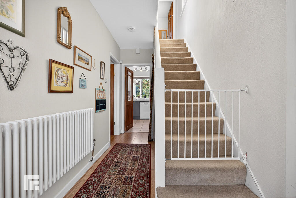 ENTRANCEHALLWAY Radiator. Wood flooring. Doors to Lounge, Bedroom five/study and kitchen. Carpeted stairs rising to the first floor.