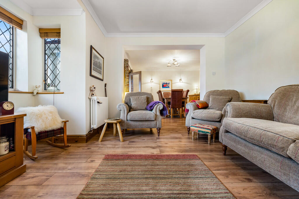 DININGROOM12' 0" x 10' 9" (3.68m x 3.28m) Open plan to lounge. Glazed oak double doors to inner hallway, plus door to stairs to and kitchen/family room. Laminate wood flooring. Radiator.
