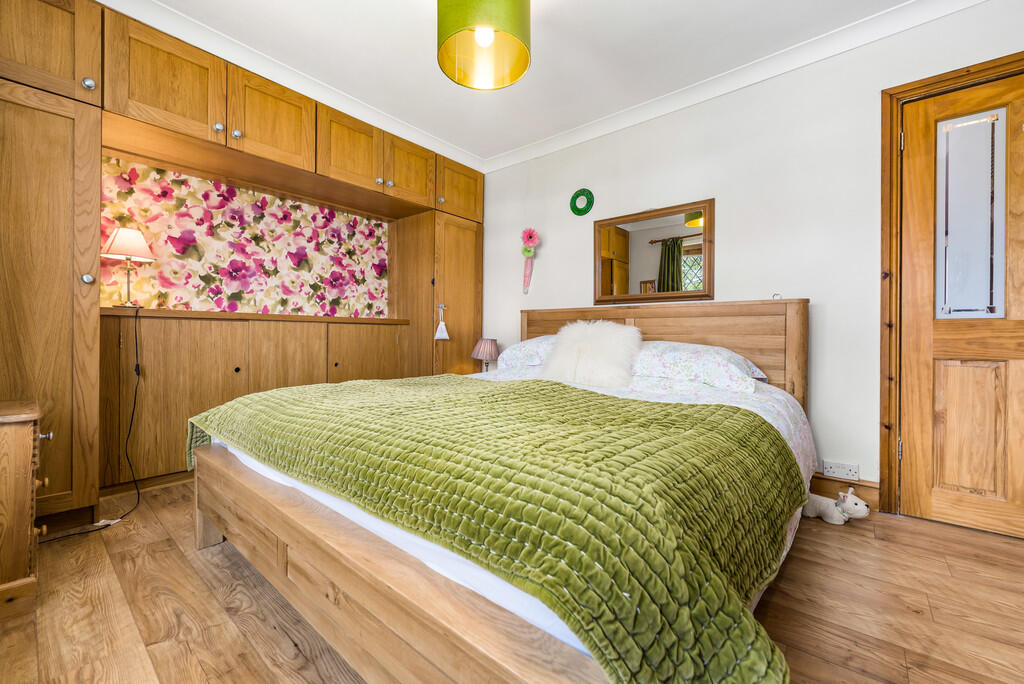 BEDROOMONE13' 4" x 9' 10" (4.08m x 3.00m) uPVC double glazed window to front with views. Bespoke oak fitted wardobes and over head units. Laminate wood flooring. Radiator. Feature cast iron fire surround.