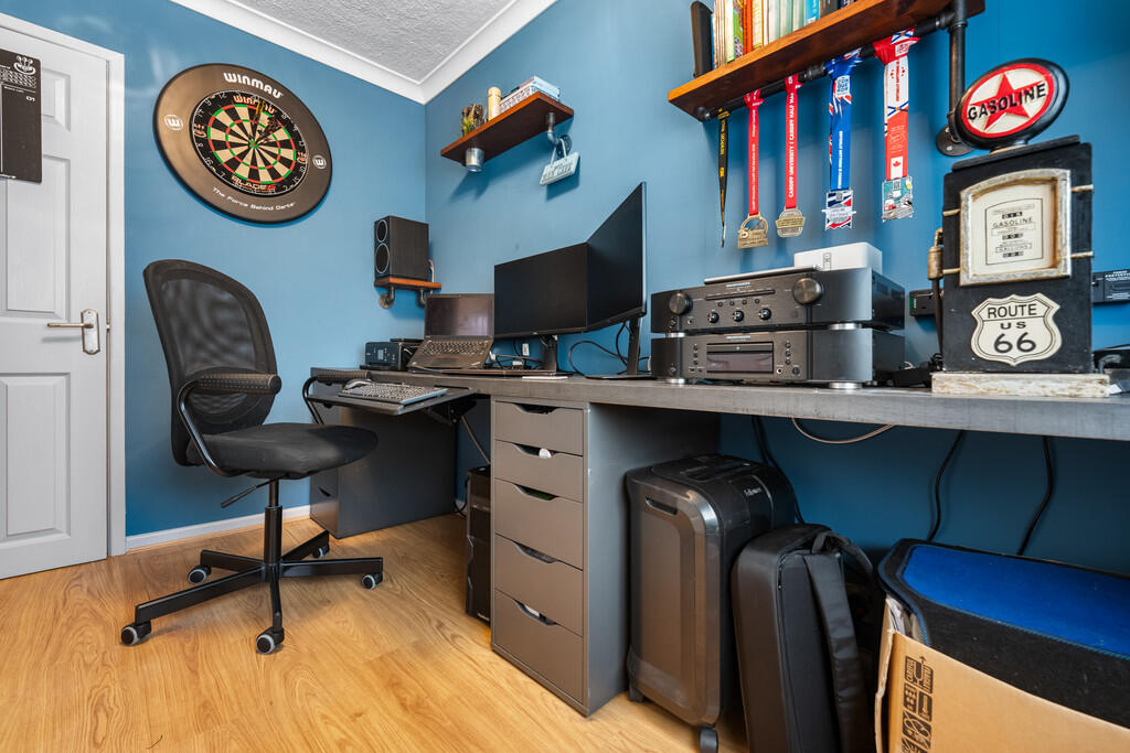 STUDY9' 8" x 6' 10" (2.95m x 2.10m) Overlooking the entrance approach. Laminate flooring. Door to utility room. Radiator. Fitted desk can remain dependant of buyers requirements.