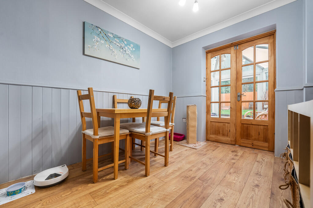 DININGROOM10' 2" x 8' 0" (3.10m x 2.46m) Ample space for large dining table. Double doors to conservatory. Door to kitchen. Laminate flooring. Radiator.