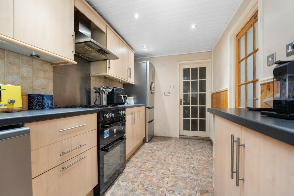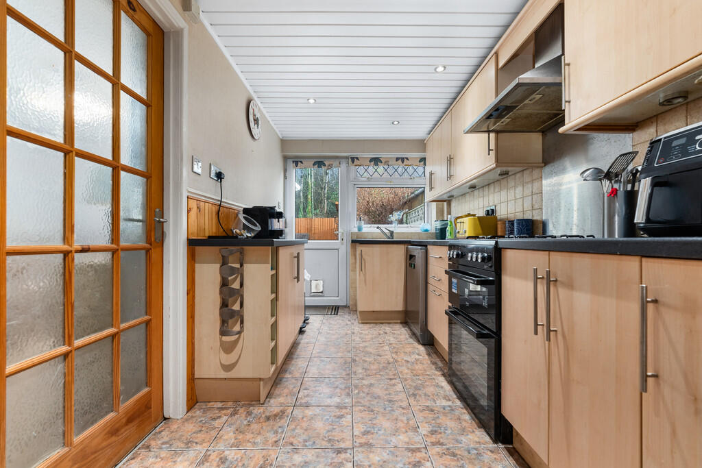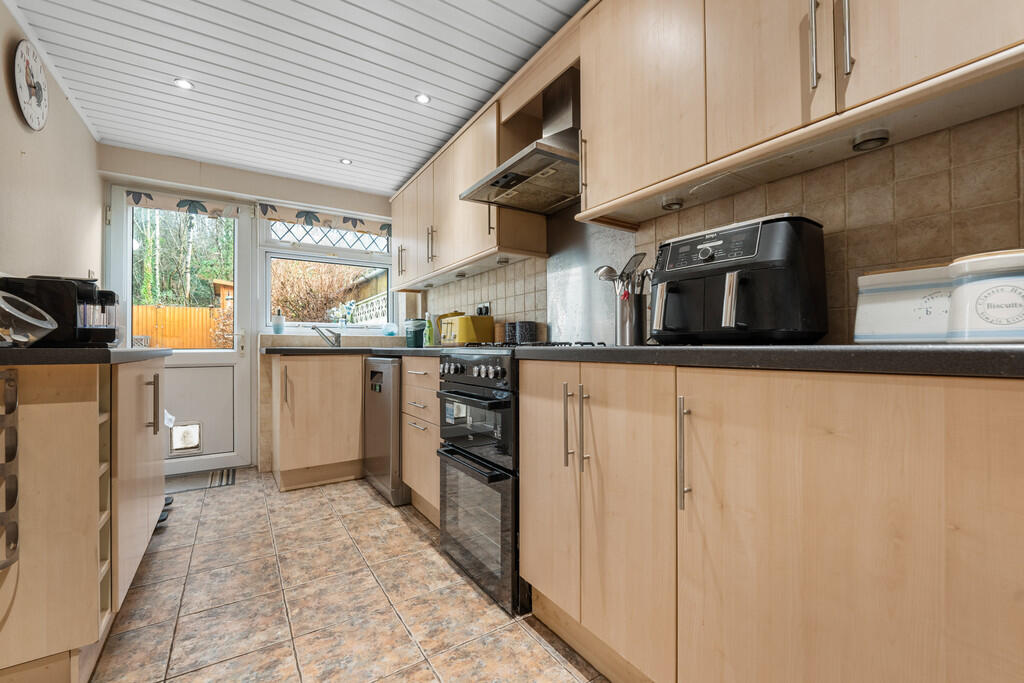 KITCHEN13' 5" x 6' 11" (4.11m x 2.11m) With units and worktops to three sides. Inset 1.5 bowl stainless steel sink with side drainer. Space for cooker. Space for fridge freezer. Plumbing for dishwasher. Matching range of eye level wall cupboards. Tiled flooring. Wall tiling to splash back areas. Door and window to rear. Radiator. Door to utility room.