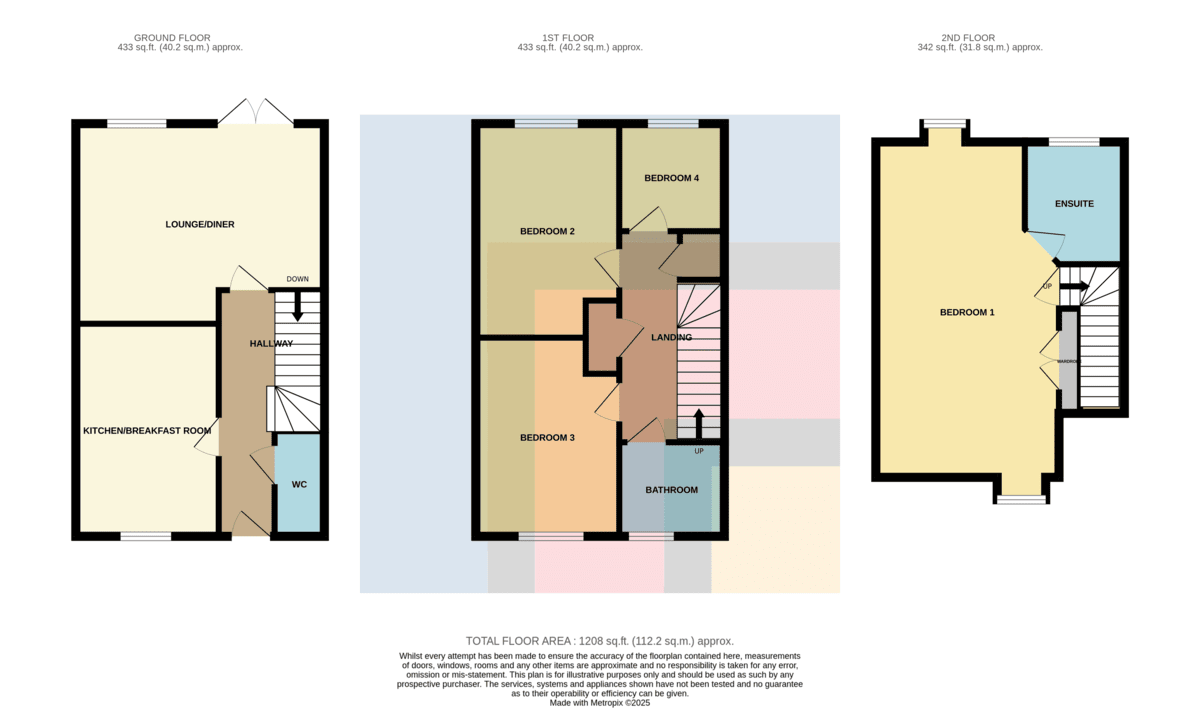 FAMILYBATHROOM6' 6" x 5' 5" (2.0m x 1.66m) Modern white suite; low level WC, pedestal wash hand baron with chrome mixer tap. Bath with chrome mixer tap and 'Mira' chrome shower. Chrome heated towel rail. Extractor fan. Obscured glass window to front.
