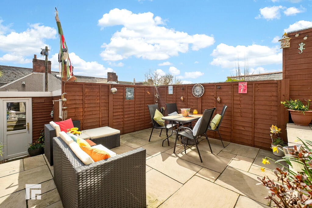 To the rear: Enclosed rear laid to attractive paving. Timber built storage shed, further shed used for storage and utility area. Outside w.c. Steps ascending to a double glazed front door to storage area and further double glazed door providing access to the lane. Further area currently utilised as a gym (formerly a garage).
