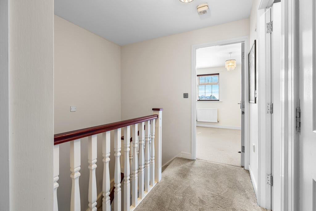 FIRSTFLOORLANDING Carpeted flooring. Radiator. Doors leading to lounge and master bedroom. Carpeted stairway, leading to second floor.