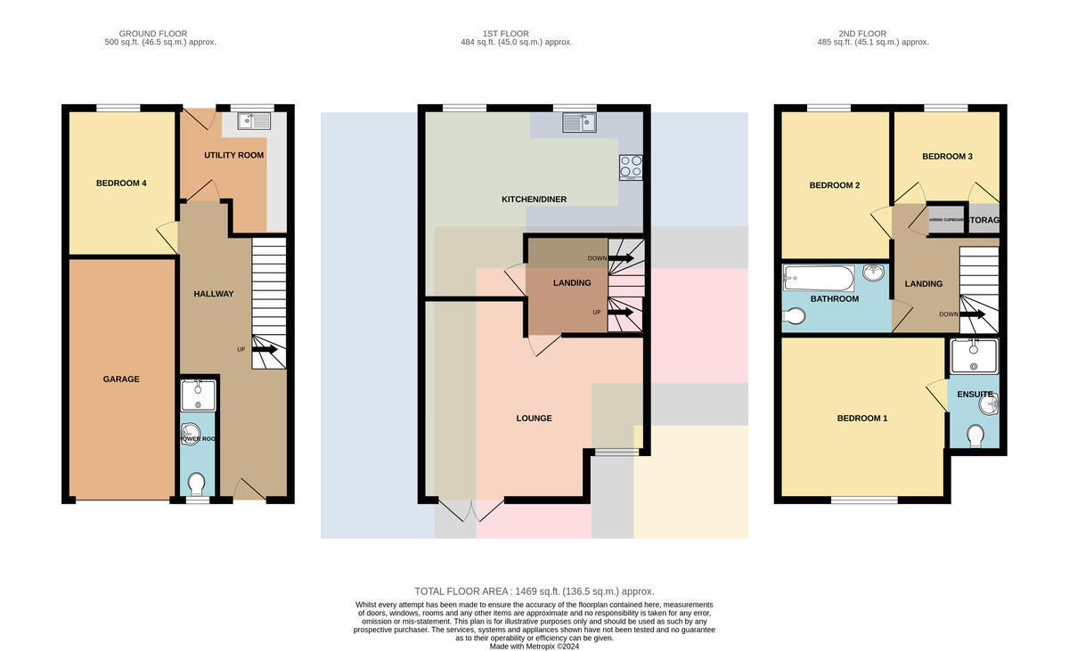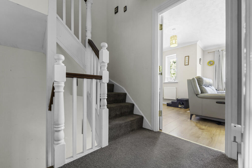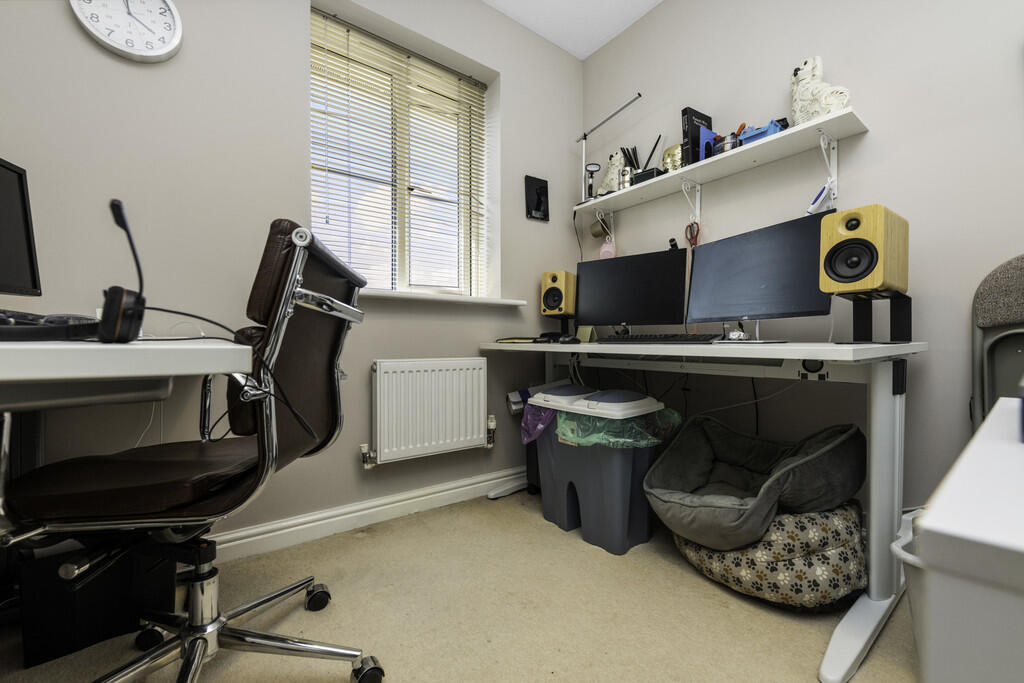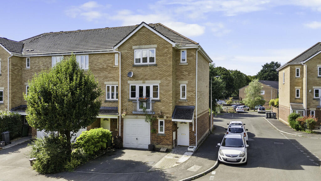 ** END TERRACE FOUR BED TOWNHOUSE ** POPULAR LOCATION ** DRIVEWAY & GARAGE ** A well presented end terrace four bedroom town house in a popular modern development being close to local amenities and transport links. Entrance hallway, ground floor shower room, study/bedroom four, utility room with door to rear garden. To the first floor is a spacious lounge with french doors opening to a Juliet balcony and a good sized kitchen and dining room. To the second floor are three further bedrooms, primary bedroom with modern ensuite shower room and there is a separate family bathroom. Gas central heating, double glazing. Low maintenance rear garden of decorative stones. Two car side by side driveway to front leading to the garage. EPC Rating: tbc