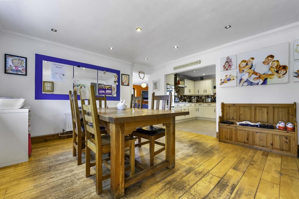 DININGROOM14' 0" x 13' 8" (4.29m x 4.17m) Wooden flooring. Large double glazed window to side aspect. Spotlights to ceiling. Power points. Radiator. Opening to kitchen, lounge, hallway and door to bedroom five.