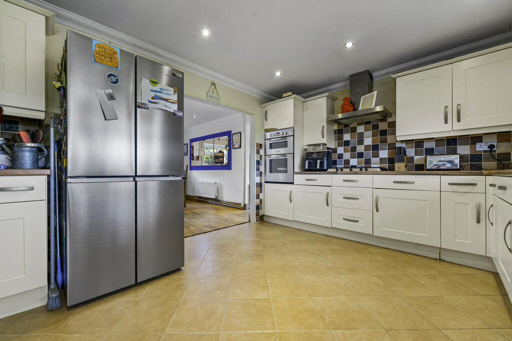 KITCHEN13' 8" x 10' 7" (4.19m x 3.23m) Tiled flooring and partially tiled walls. Double glazed window to rear aspect. Spotlights. Range of wall, base and drawer units with worktops over incorporating stainless steel 1.5 sink and drainer with hot and cold tap over. Integrated oven and grill. Space for appliances such as fridge/freezer, and dishwasher. Power points. Tiled splashback. Door leading to full length conservatory.