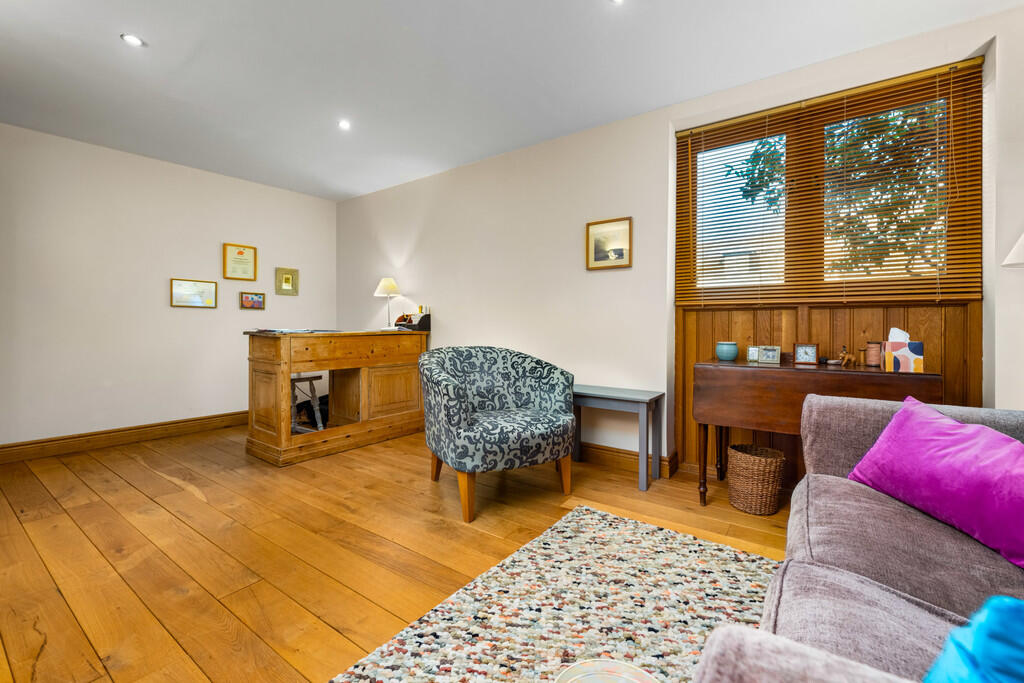 STUDY/BEDROOMFIVE16' 8" x 9' 10" (5.10m x 3.00m) Wooden flooring. Spotlights. Window overlooking driveway. Currently used as a home office but has potential to be converted into an additional bedroom. Power points. Underfloor heating.