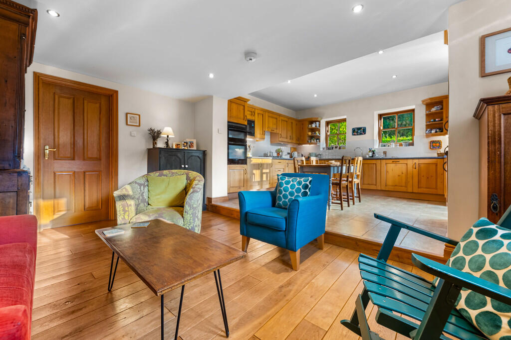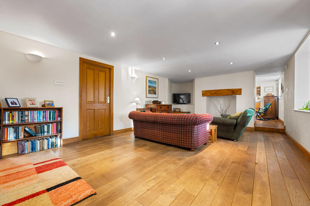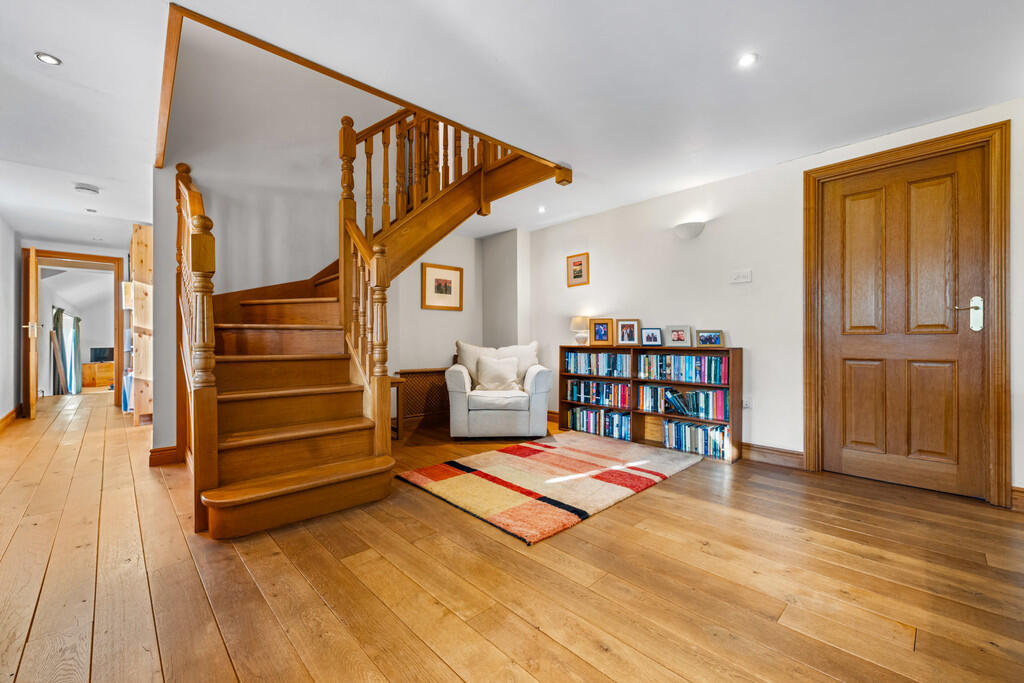 ENTRANCEHALL Entered via wooden door. Solid wood flooring. Power points. Doors to study/bedroom five and long room. Spotlights and additional wall lighting. Underfloor heating. Stairs rising to first floor.