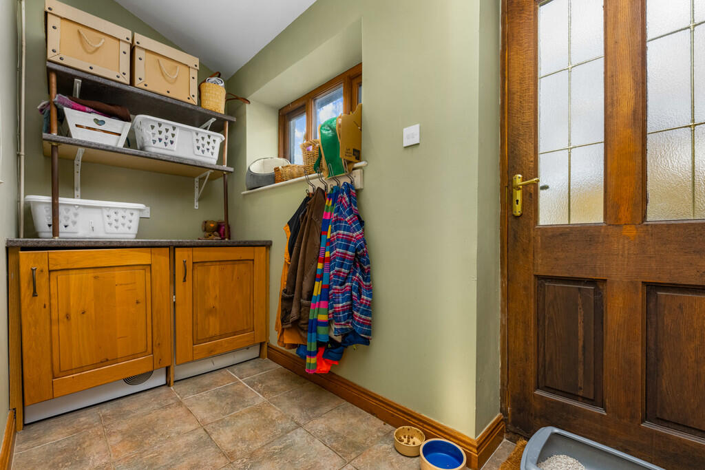 UTILITYROOM13' 7" x 4' 3" (4.15m x 1.30m) Tiled flooring. Worktops with space and plumbing beneath for appliances such as a washing machine and tumble dryer. Window. Power points. Door opening onto the forecourt.