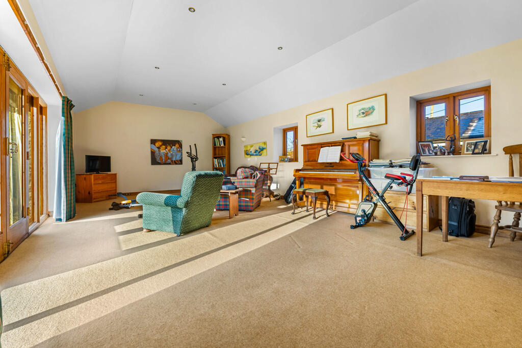 LONGROOM28' 10" x 14' 9" (8.80m x 4.50m) Well proportioned additional reception room. Vaulted ceiling. Full height double glazed French doors leading to the rear, with two additional windows overlooking driveway. Power points. Underfloor heating. Carpet. Spotlights.