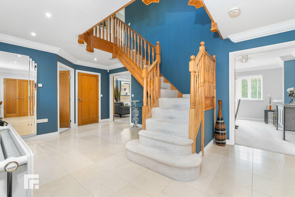 ** EXECUTIVE DETACHED HOME ON EXCLUSIVE DEVELOPMENT ** 0.35 ACRE PLOT ** TRIPLE GARAGE WITH LIVE/WORK ACCOMMODATION ABOVE ** A rare opportunity to acquire this executive five bedroom detached home situated in an exclusive development within 0.35 acres of gardens. On the ground floor the accommodation comprises; large entrance hallway, lounge, sitting room, dining room, kitchen, utility room, study and WC. To the first floor are five bedrooms, two with en-suite, plus the family bathroom. Triple garage with living/work space above. Beautifully presented private rear gardens, and spacious driveway with landscaped gardens to front. EPC: C. 3511sq.ft. including garage and accommodation over.DESCRIPTION ** EXECUTIVE DETACHED HOME ON EXCLUSIVE DEVELOPMENT ** 0.35 ACRE PLOT ** TRIPLE GARAGE WITH LIVE/WORK ACCOMMODATION ABOVE ** A rare opportunity to acquire this executive five bedroom detached home situated in an exclusive development within 0.35 acres of gardens. On the ground floor the accommodation comprises; large entrance hallway, lounge, sitting room, dining room, kitchen, utility room, study and WC. To the first floor are five bedrooms, two with en-suite, plus the family bathroom. Triple garage with living/work space above. Beautifully presented private rear gardens, and spacious driveway with landscaped gardens to front. EPC: C. 3511sq.ft. including garage and accommodation over.