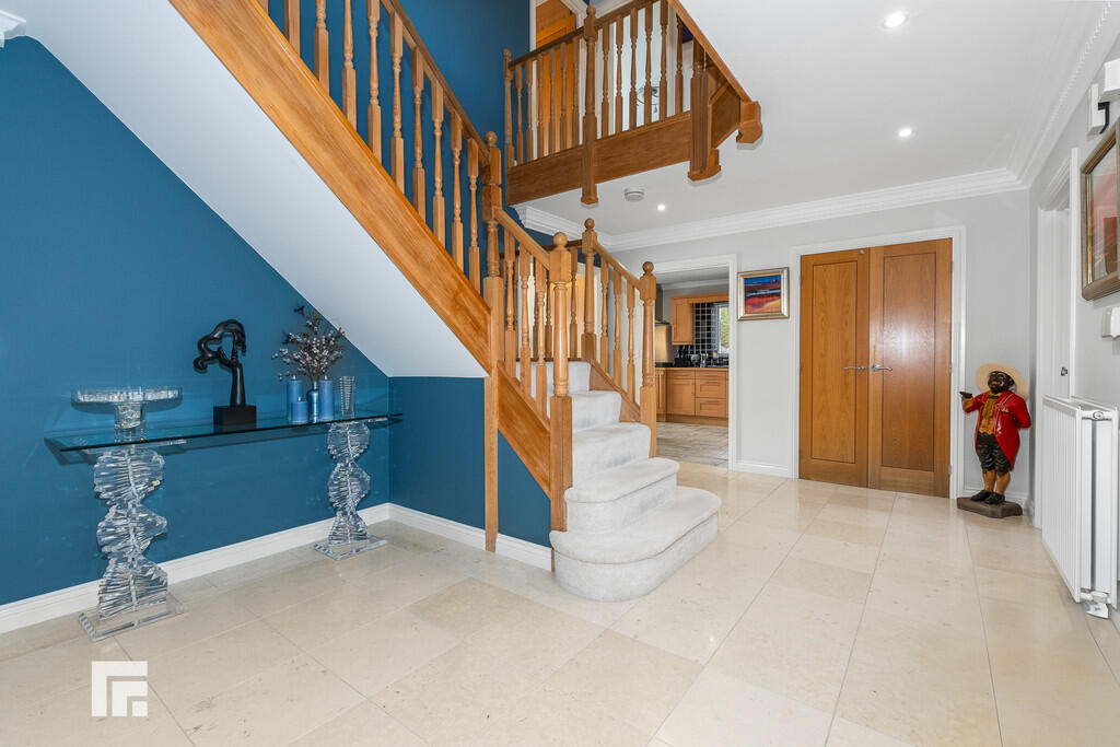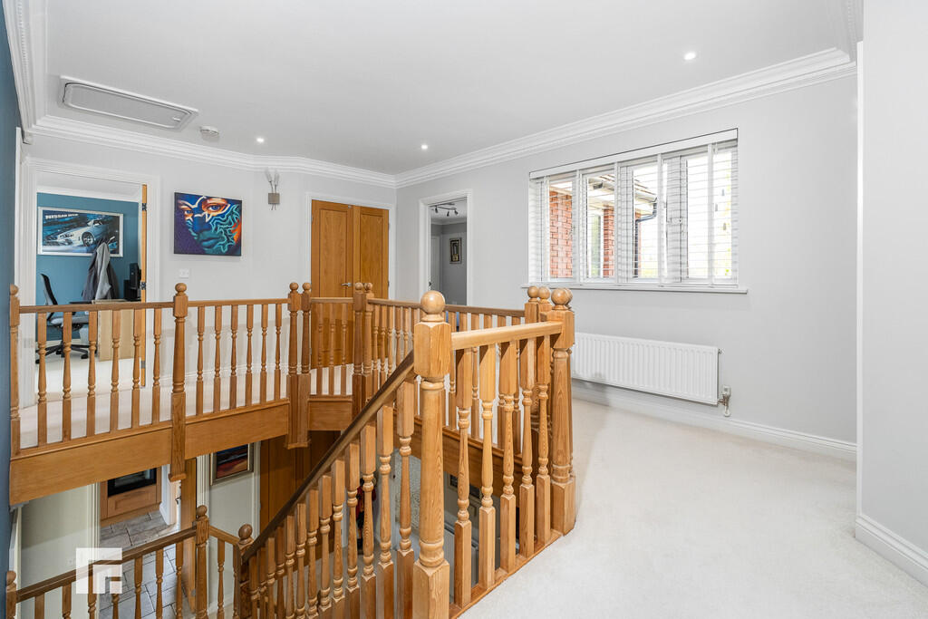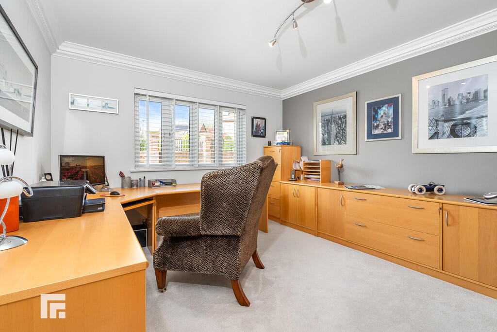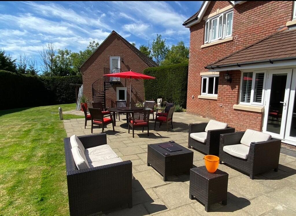 ** EXECUTIVE DETACHED HOME ON EXCLUSIVE DEVELOPMENT ** 0.35 ACRE PLOT ** TRIPLE GARAGE WITH LIVE/WORK ACCOMMODATION ABOVE ** A rare opportunity to acquire this executive five bedroom detached home situated in an exclusive development within 0.35 acres of gardens. On the ground floor the accommodation comprises; large entrance hallway, lounge, sitting room, dining room, kitchen, utility room, study and WC. To the first floor are five bedrooms, two with en-suite, plus the family bathroom. Triple garage with living/work space above. Beautifully presented private rear gardens, and spacious driveway with landscaped gardens to front. EPC: C. 3511sq.ft. including garage and accommodation over.