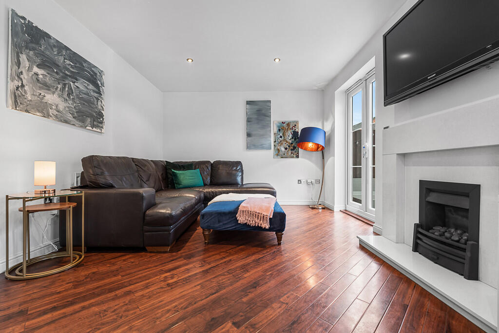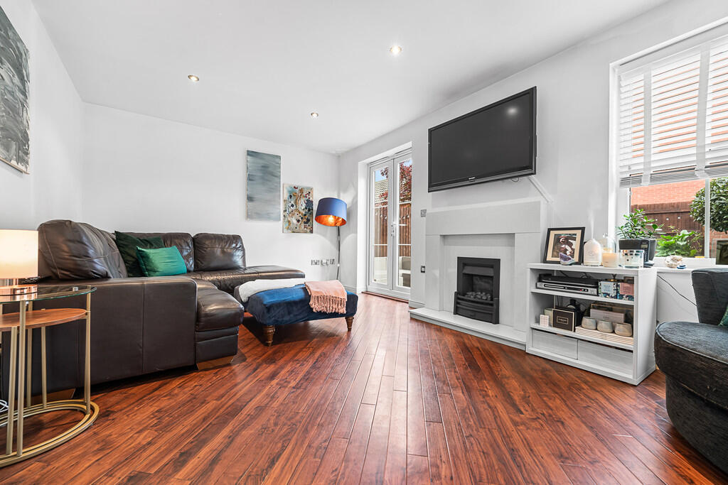 LOUNGE17' 9" x 10' 9" (5.43m x 3.30m) An excellent sized lounge with french doors to the garden, window overlooking the rear garden and additional window to front, feature coal effect living flame gas fire with with matching granite hearth and surround, quality karndean flooring and two radiators.