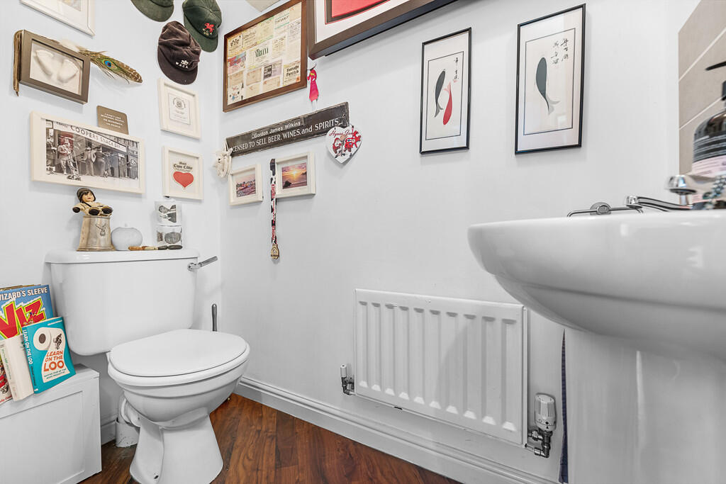CLOAKROOM Comprising low level wc, wash hand basin, quality karndean flooring, extractor fan and radiator.