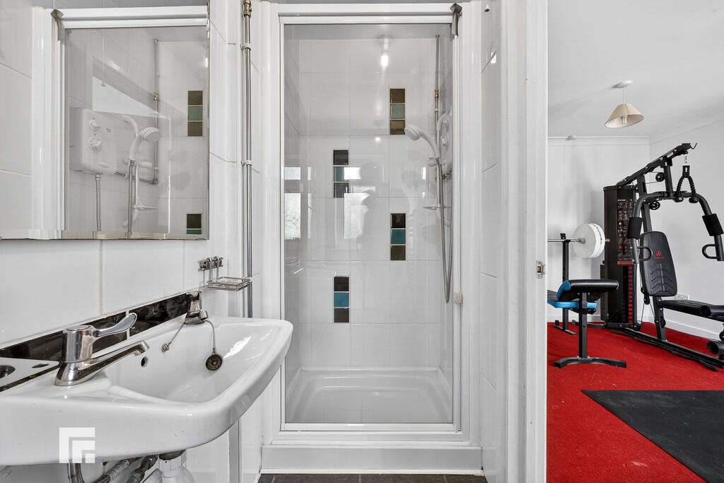 EN-SUITE10' 11" x 3' 1" (3.34m x 0.95m) Obscure double glazed uPVC windows to front aspect. Fully tiled walls. Tiled flooring. Shower cubicle. Wall mounted wash hand basin with mirror over. W.C. Extractor. Heated towel rail.