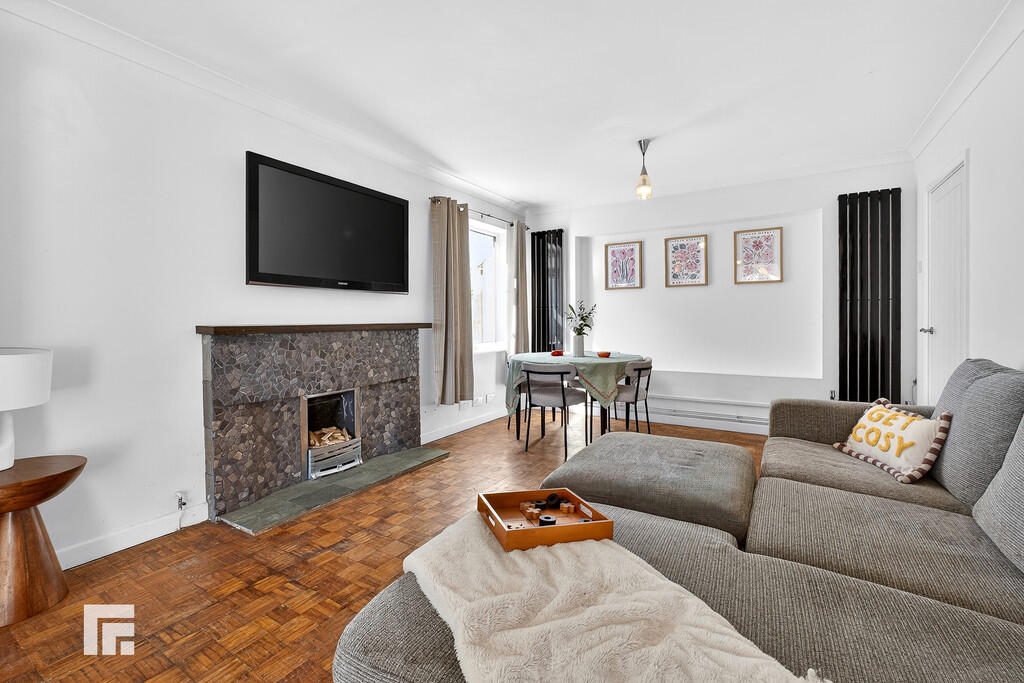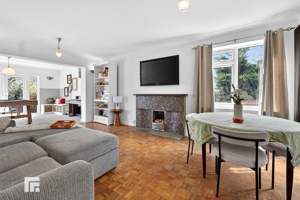 LIVINGROOM17' 7" x 11' 8" (5.36m x 3.58m) Double glazed uPVC windows to side aspect. Wooden flooring. Gas fireplace with tiled stone effect surround. Large opening to dining room.