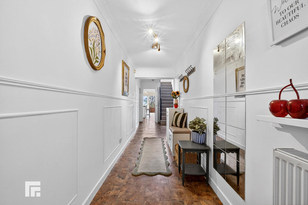 ENTRANCEHALL Extremely spacious entrance hall with doors leading to lounge/dining room, kitchen/breakfast room, study and bedroom five/gym. Radiator. Luxury vinyl tile (LVT) flooring.