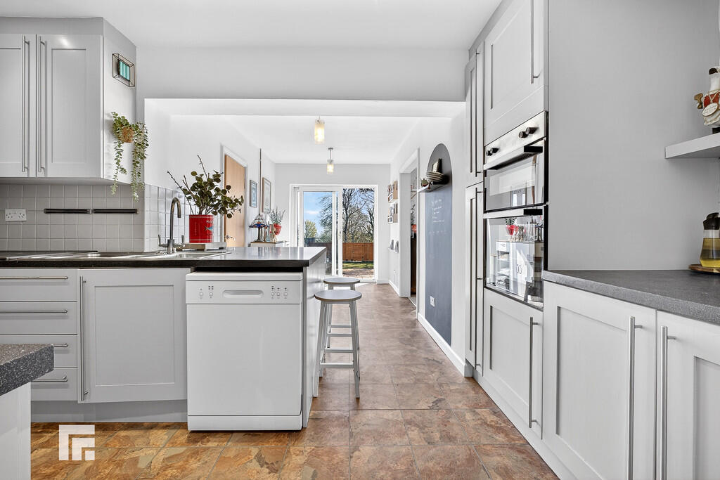 DININGROOM14' 5" x 12' 6" (4.40m x 3.83m) Double glazed uPVC windows and patio doors, leading to large rear garden. Ample natural daylight. Carpeted flooring. Wall mounted radiator. Opening to kitchen.