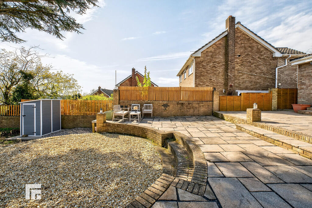GARDEN A fantastic rear garden. Exceptionally large with ample sun all day through to the evening. Brick and fence surround. Paved and laid to lawn. Feature stone seating area. External power points. Outside tap. External lighting. Accessed from the dining room, kitchen, cloakroom, and garage. Side gate access.