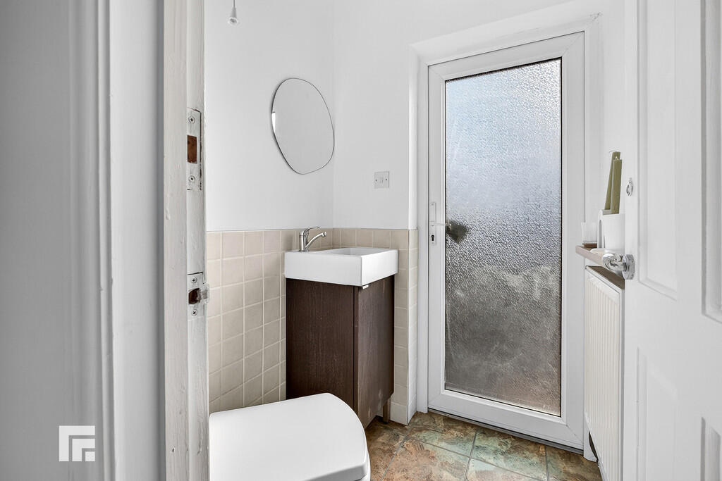 CLOAKROOM/W.C1' 11" x 14' 5" (0.6m x 4.4m) Modern low level WC and vanity enclosed wash hand basin. LVT flooring. Tiled splash backs. Radiator. uPVC double glazed door to rear garden.
