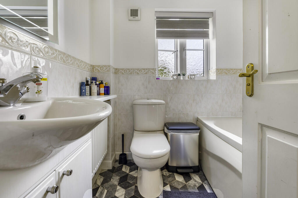 FAMILYBATHROOM6' 7" x 5' 6" (2.01m x 1.70m) Comprising low level wc, wash hand basin with storage below, panelled bath with shower mixer tap. Tiled splashback. Obscured glass window to rear. Extractor fan. Radiator.