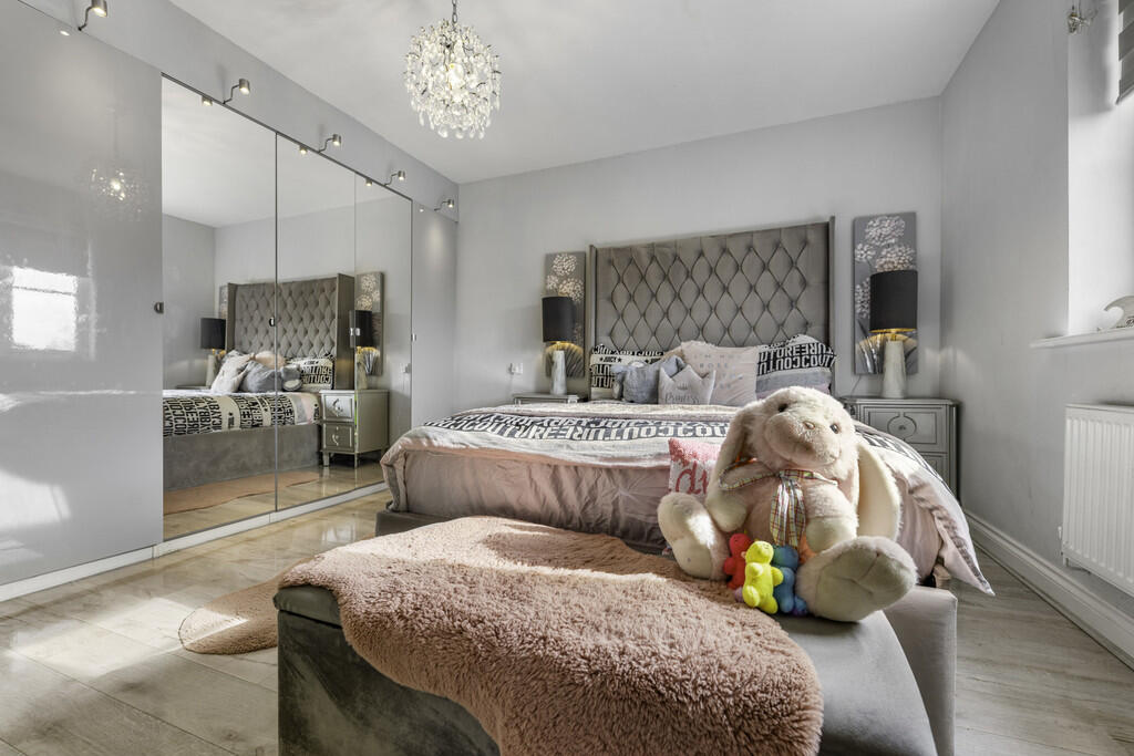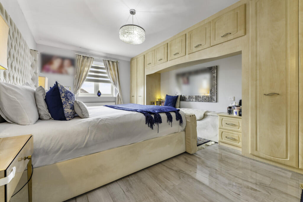 ENSUITEBATHANDSHOWERROOM10' 8" x 5' 6" (3.26m x 1.69m) Comprising low level wc, bidet, vanity wash basin with storage below, panelled bath, shower cubicle with chrome shower. Wall tiling to half height. Obscured glass window to rear. Radiator. Electric shaver point. Extractor fan.