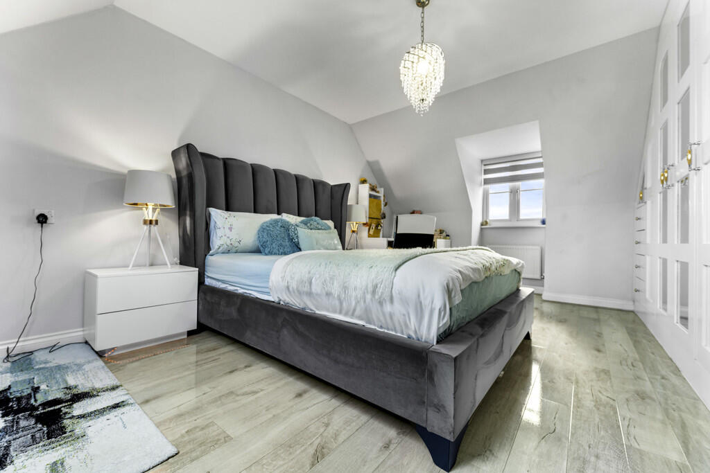 BEDROOMTWO12' 6" x 11' 6" (3.83m x 3.53m) Overlooking the lawned front garden, a second double bedroom. Range of fitted wardrobes to one side. Laminate flooring. Radiator. Door to ensuite.