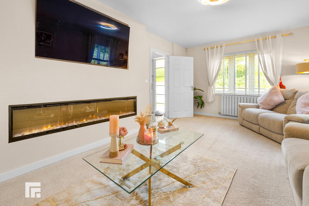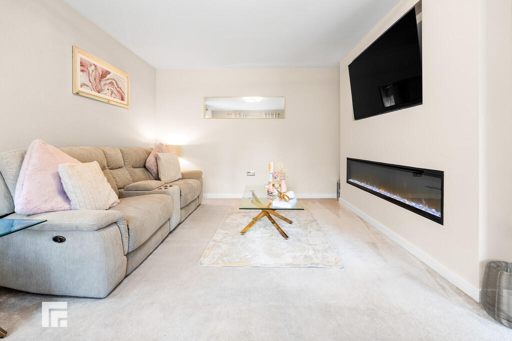LOUNGE17' 1" x 11' 7" (5.23m x 3.54m) uPVC double glazed windows to front and side. Radiator. Feature electric fireplace.