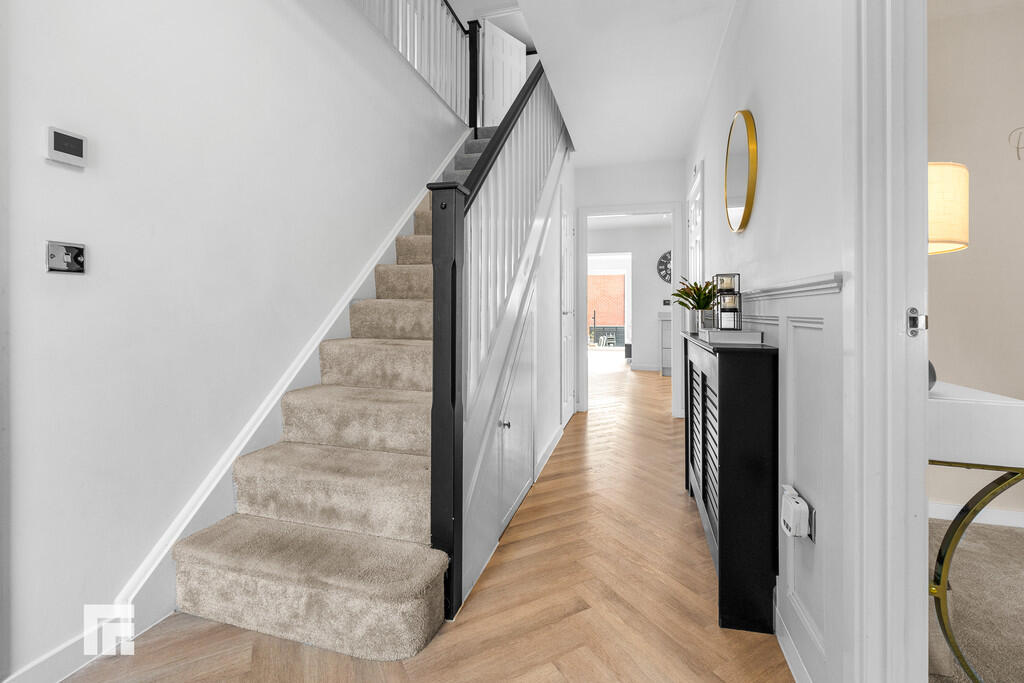 HALLWAY16' 2" x 6' 5" (4.93m x 1.96m) Entered via double glazed composite front door with matching side window. Luxury Vinyl Tile (LVT) flooring. Doors to lounge, study, kitchen/dining/family room and WC. Stairs to first floor with storage cupboard under. Radiator.
