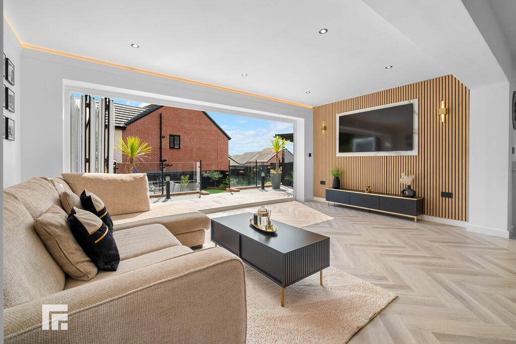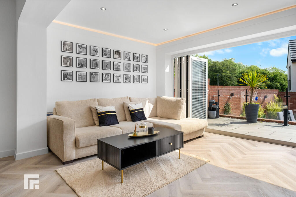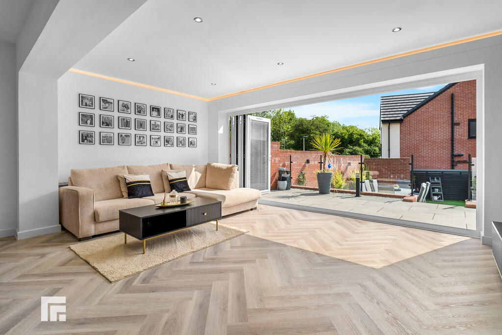 FAMILYROOM16' 11" x 9' 8" (5.16m x 2.97m) A recently built extension creating a superb family area with 5 leaf bi-fold doors to landscaped rear garden. LVT flooring with underfloor heating. Spotlights and coving lighting.
