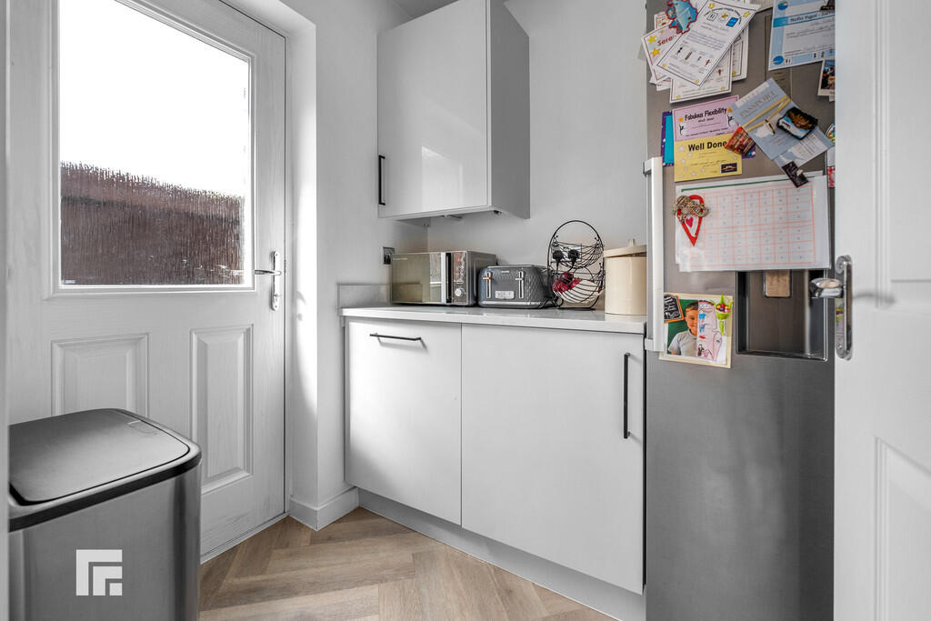 UTILITYROOM6' 0" x 5' 10" (1.83m x 1.78m) Fitted base and eye level units with Quartz worktops. Integrated washing machine, space for fridge/freezer. LVT flooring. Double glazed composite door to side. Radiator. Cupboard housing gas combination boiler.