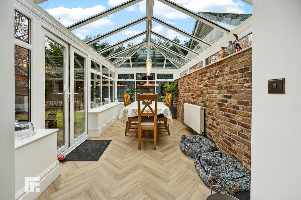 GARDENROOM15' 6" x 8' 0" (4.73m x 2.45m) An impressive garden room currently utilised as a family dining room. With uPVC double glazed walls and roof. Brick effect wall to one side. French doors to the paved patio. Quality herringbone effect LVT flooring. Radiator.