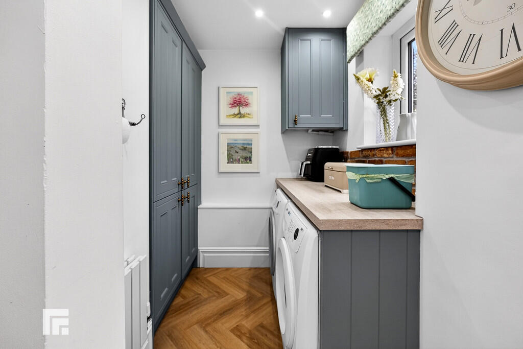 UTILITYROOM6' 7" x 5' 10" (2.01m x 1.79m) With units and worktops along two sides. Plumbing for washing machine. Space for tumble dryer. Concealed 'Worcester' gas central heating boiler. Brick effect splash back. Quality herringbone effect LVT flooring. Radiator.