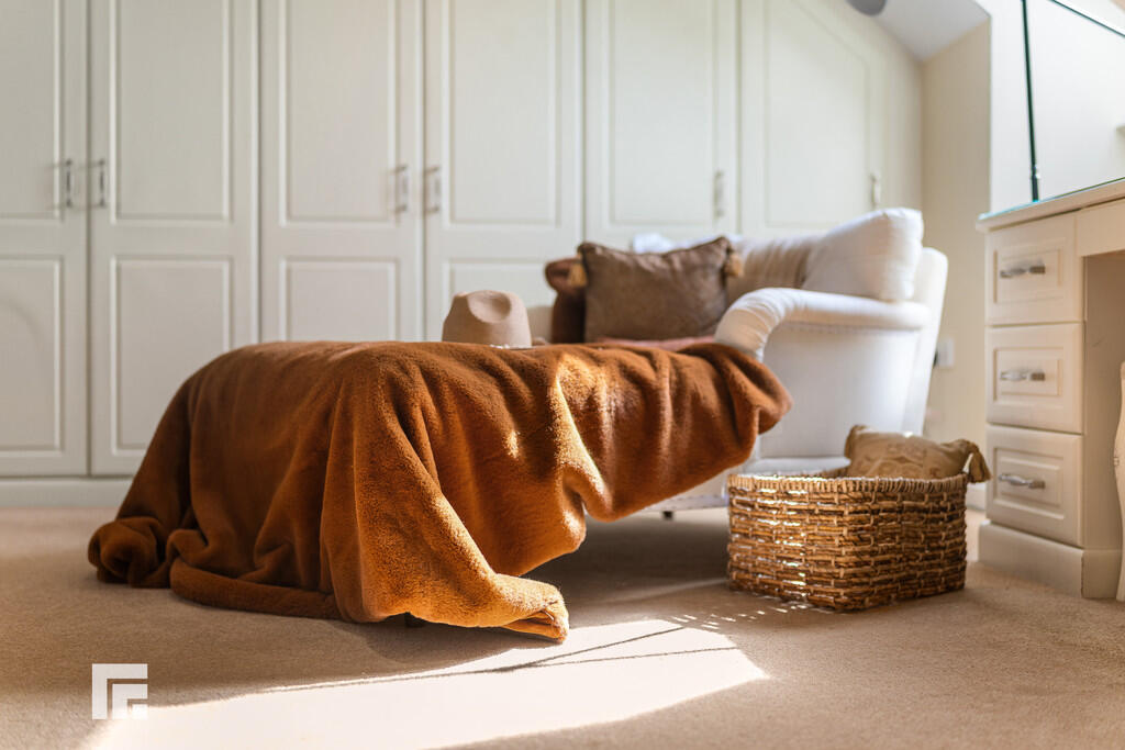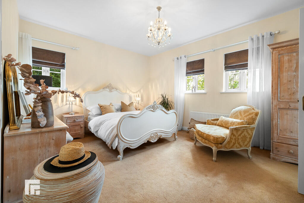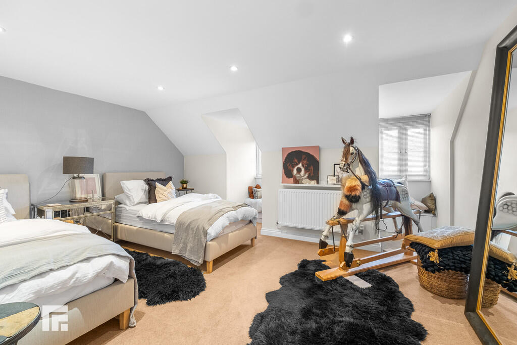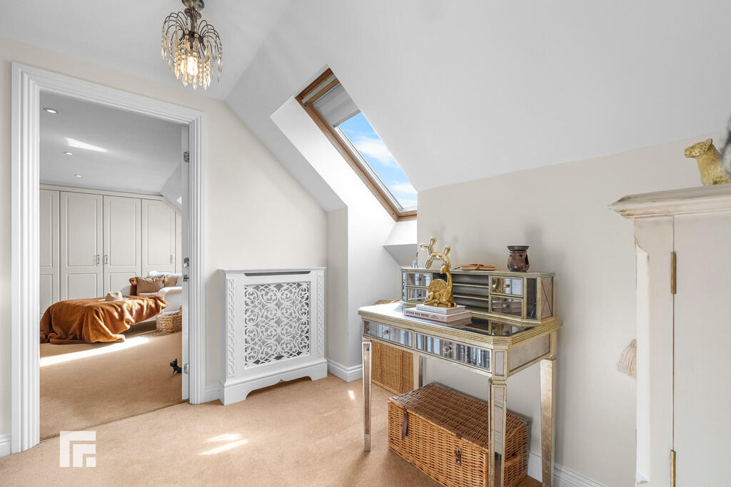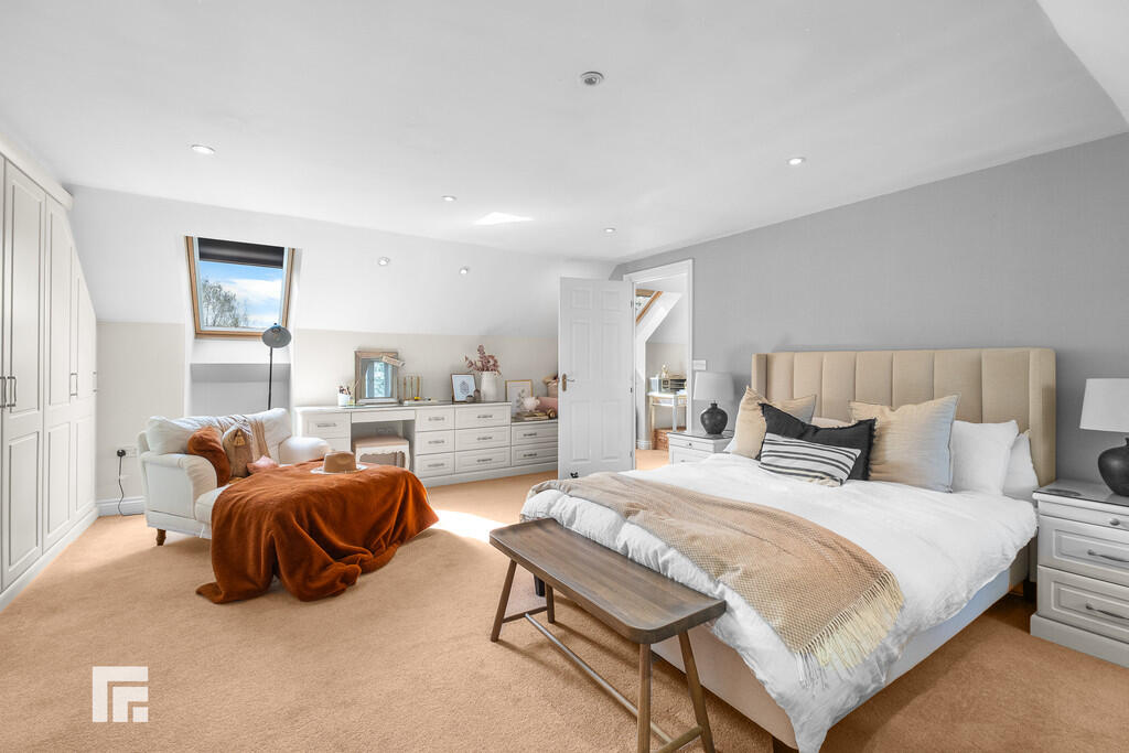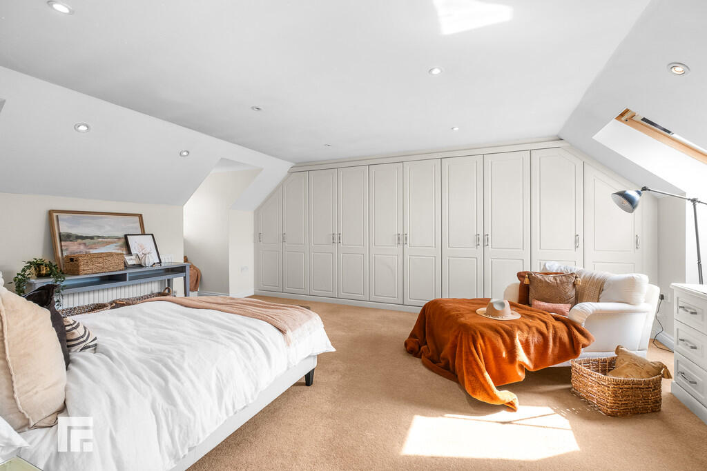 BEDROOMFOUR23' 1" (max)x 13' 9" (7.06m x 4.21m) Another excellent sized double bedroom overlooking both the front aspect and the rear via two dorma windows and one velux window. A range of wardrobes to one side with matching dresser and additional set of drawers fitted. Recessed spotlights. Radiator.