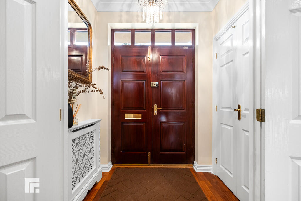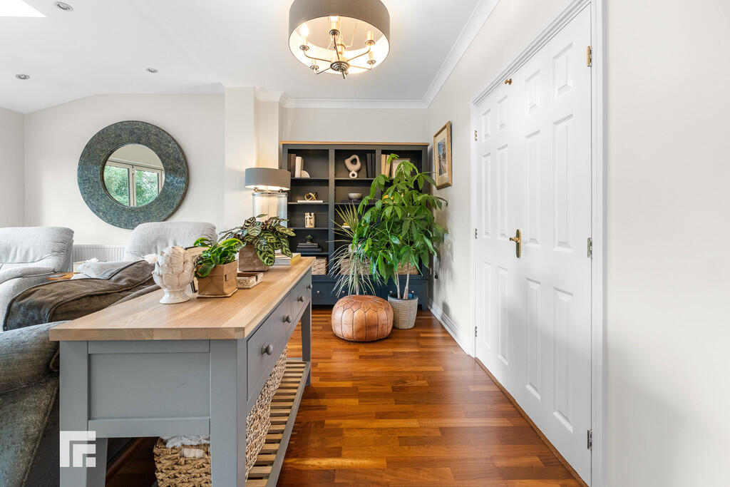 ENTRANCEPORCH Approached via double opening wood panelled doors leading to the entrance porchway. Built in cupboard with hanging rail and shelving. Radiator.