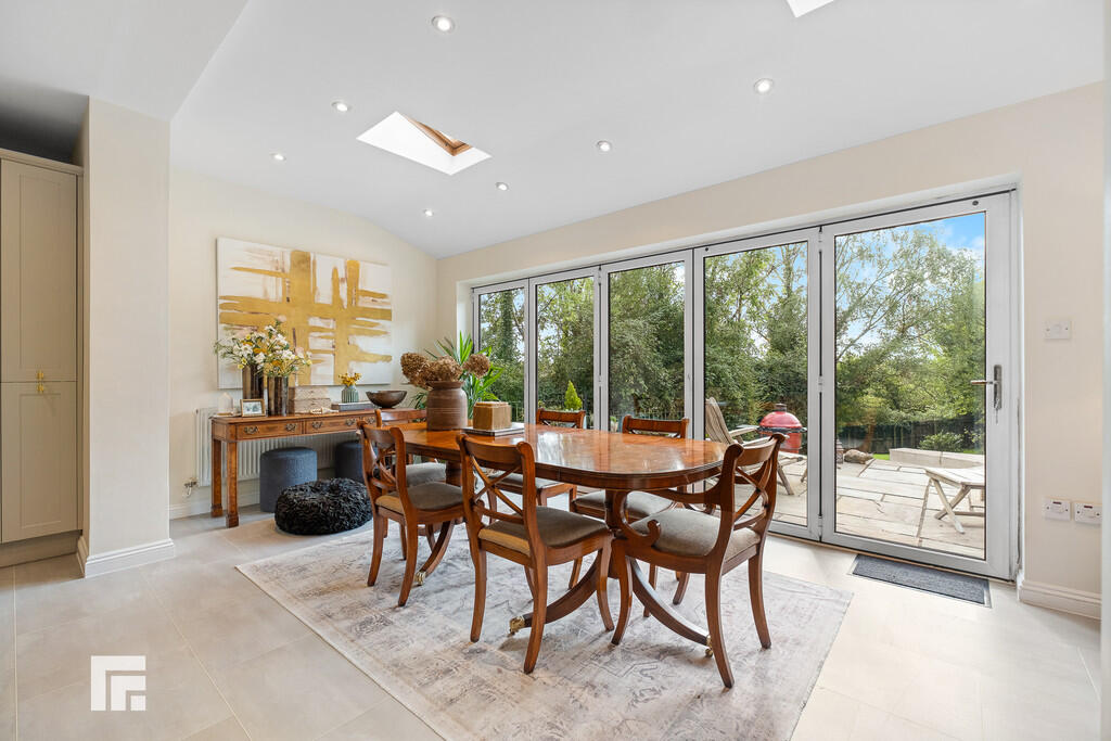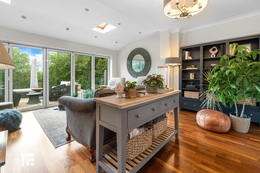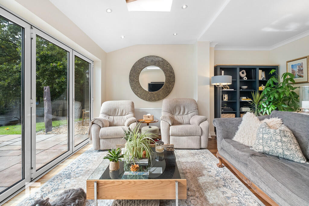 SITTINGROOM16' 4" x 16' 3" (4.99m x 4.97m) An excellent further reception with bi-folding doors opening to the rear paved patio. Wood flooring. Radiator. Double doors to lounge and kitchen.