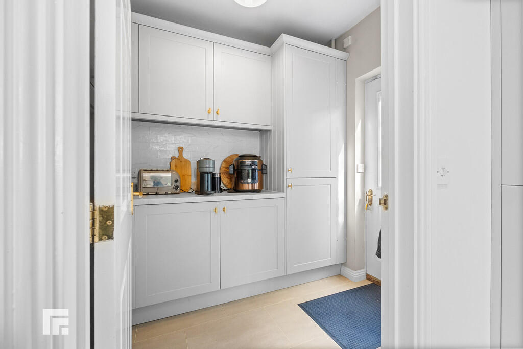 UTILITYROOM8' 6" x 5' 10" (2.60m x 1.80m) Well appointed along two sides in shaker style fronts beneath laminate worktop surfaces. Matching range of eye level wall cupboards. Tiled splash back. Concealed 'Vaillant' combi gas central heating boiler. Amtico flooring. Radiator. Door to side.