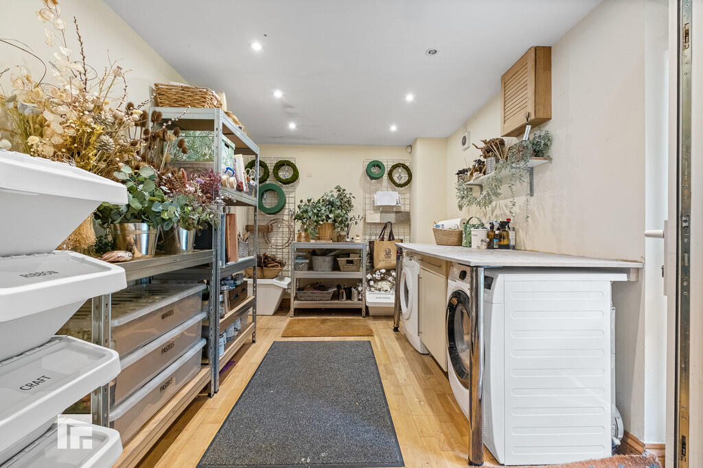 ROOMONE17' 4" x 8' 5" (5.30m x 2.59m) With Upvc door to side. Wash hand basin. Plumbing for washing machine.
