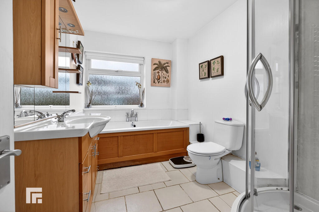 FAMILYBATHROOM8' 11" x 5' 4" (2.72m x 1.65m) A white suite comprising of low level wc, vanity wash hand basin with ample storage below. Panelled bath with chrome mixer tap and shower head. Tiled splash back areas. Obscured glass window to rear. Chrome heated towel rail. Electric shaving point.