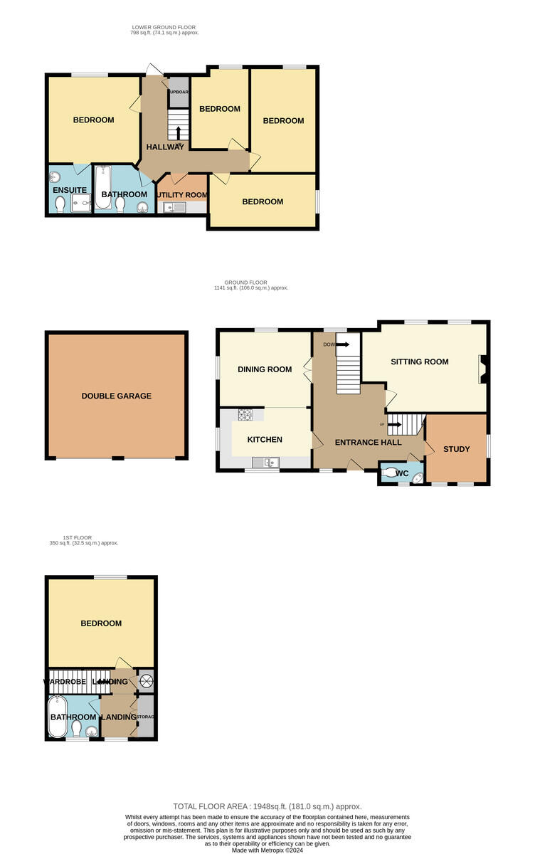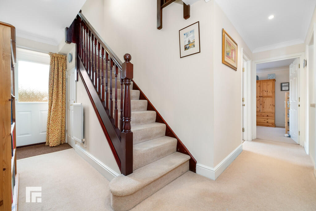 ENTRANCEHALL Entered via double glazed front door with double glazed window to front and a further double glazed window to rear with lovely views. Stairs to first floor and stairs to lower ground floor. Doors to kitchen, lounge, study and cloakroom/WC plus glazed double doors to dining room. Radiator. Telephone point.