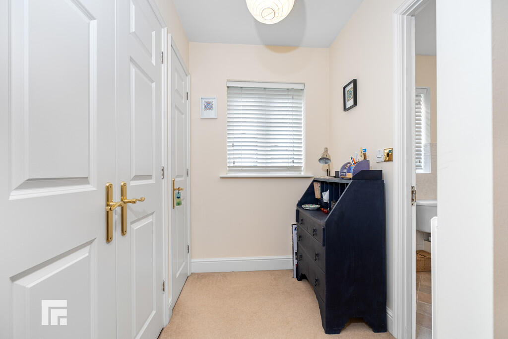 LANDING/DRESSINGROOM9' 6" x 4' 11" (2.910m x 1.504m) Fitted wardrobes to one wall. uPVC double glazed window to front. Airing cupboard housing hot water tank and shelving. Access to loft space. Doors to master bedroom and en-suite. Radiator.