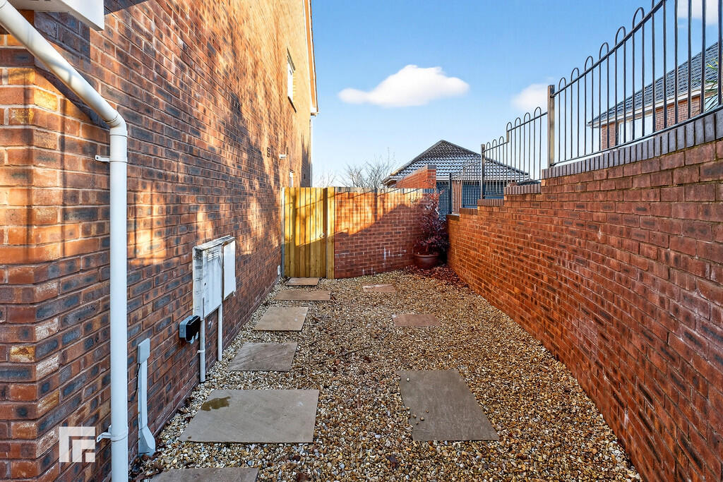 FRONT Steps leading to entrance. Stone area with timber gates to both sides for access to side and rear garden. Driveway with parking for up to four vehicles.