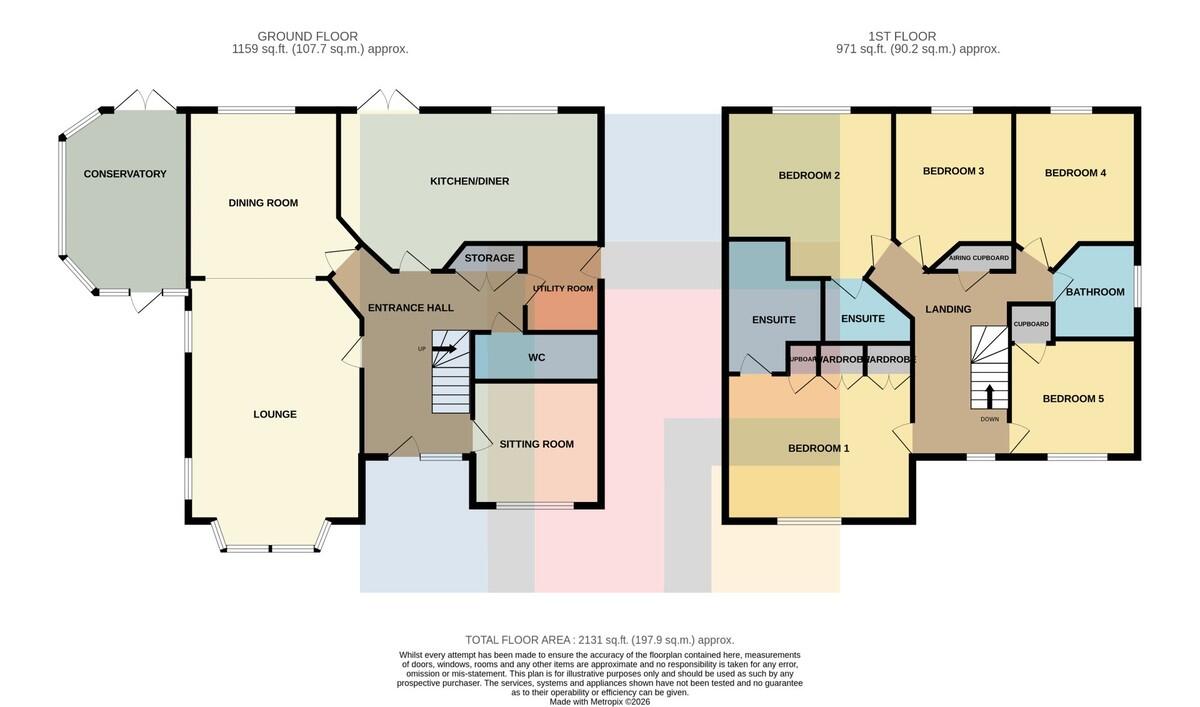 BEDROOMFIVE9' 11" x 9' 4" (3.03m x 2.87m) Overlooking the front entrance approach. Built in storage. Radiator.